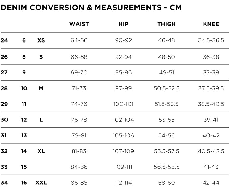 Due to the stretch nature of this denim, we recommend sizing down to ensure a firm fit on waist and hips.